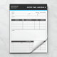 This meeting agenda notepad is for organizing and summarizing the discussion points of a work meeting. It is a great productivity and project management tool for anyone who works in business. What really sets this notepad apart, however, is the ability to customize certain design elements such as the colors. You can also add your name, business name, and job title to the header.