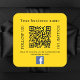 A bright yellow background, making them perfect for professionals who want to make a memorable impression. Personalise and add your business name, your own qr code to your Facebook account and a text. Black text. With the text x2: Follow us!