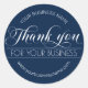 Business Navy Blue White Calligraphy Thank You Classic Round Sticker