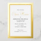 This business open house invitation features a traditional professional design accented with a thick real gold foil border on a white background.