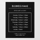 A professional and elegant looking opening hours sign for your business. This stylish opening hours sign will be securely attached to your store window to display your opening hours. Very popular in shop windows and doors, it looks good on glass. Opening hours signs can be used by any type of business, stores, beauty salons, dentists, offices, factories and much more. Let your customers know when you are open.
