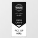 This is a black and white "Online Order Pick Up Here" window cling with a down arrow and text. It is used to indicate where customers can pick up their online orders. Clear message and easy to spot. A great order pickup sign for restaurants, shops, and other small businesses.