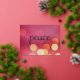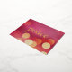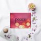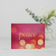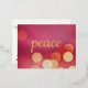 A classy card with timeless appeal. A simple message of peace in gold foil script typography against a background of cranberry red with golden light baubles or bokeh lights. Customise your message, salutation and company name on the back of the postcard. A lovely sentiment for the holiday season.