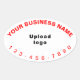 Customisable sticker that you can put your business phone number for customers to easily find it when they need to call you to place their orders or ask enquiries. You can use it as marketing material to advertise your business or to promote your brand name to customers or clients. Customisable sticker that you can use to build brand name awareness. You can also use it as accessory of product packaging materials. Designs are red texts on white background and oval shape. To customise this sticker, upload your business logo, type your business or company name and phone number. After uploading logo and typing texts, please check the appearance. If the appearance is pleasing to you, you can place your order now. If you need to resize and move the logo and texts to fit on this sticker, please change in the design tool. You can also make other changes according to the appearance that you prefer in the design tool such as changing the background colour, font colour and font style.