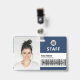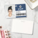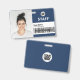 Easily personalise this Custom Employee Name Badge with Photo, Scan Bar Code and business company logo, featuring persons name, occupation, optional identity bar code, with metal clip included. A branded badge useful to identify staff, visitors or guests. A simple business design left-aligned in navy blue and white colours fully customisable in front and back sizes, sans-serif basic and modern fonts and a professional and clear look. An useful tool for corporate events, reunions, renews and celebrations. Create more corporate photo badge identification card in different colours for any category you need to identify: staff, visitors or guests. Avaiable with or without lanyard, metal clip or with retractable. No minimum order.