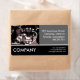 A business label template with a black white edged footer with the upper area divided in half with a photo or image on the left (which can also be replaced with your own photo) with a panel for your address on the right. Space for company name at the left of the footer with Telephone, web and email contact details on the left. Can also be customised for other uses. This label style also goes well with my "Widescreen" range of business cards. NB the photo area is masked if you are replacing the image you may need to adjust the size of your photo.