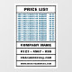 Business Price List and Information