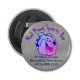 Button bottle openers with a template for a business such as a restaurant or pub. The opener has a brushed metal look background. The sample artwork is filtered in blue, purple, and pink hues, and allows for business name, logo, and address. Fully customisable, or message MineByDesign to design one as you envision it!