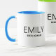 Personalised Business Promotional Add Your Name Two-Tone Coffee Mug in blue. Take your side gig to the next level with this customised business coffee mug. Simple modern classic black typography. Add your name and your company name or title to this mug and make an impact. Perfect for business meetings, for around the office, events or promotional giveaways. Part of a collection. Design featured on Zazzle's Holiday Lookbook. ©Marisu Valencia