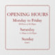 Make your business hours clear and stylish with this customisable Window Cling! Perfect for storefront doors and windows, this reusable cling displays your opening hours with a clean, professional design that catches the eye. Easy to apply and remove without residue — ideal for shops, cafes, salons, and offices.