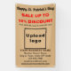 Happy Saint Patrick’s Day! Another holiday to celebrate this March and to advertise also your business or to promote your brand name. Green is always the colour for this holiday but try also other colours. Customisable light brown banner with Saint Patrick Sale, your business name and other information. This might be the colour that matches your business colour scheme. Banner that you can use as marketing material to attract more customers. Customise it and display it to convince more customers to buy your products or clients to like your services. Contents are Happy Saint Patrick’s Day greeting, sale texts with percent discount that you will offer, sale dates, your business name, logo, address, phone number, e-mail and website or your business social media page. Please check the appearance after uploading logo and typing texts. If the appearance is pleasing to you, you can place your order now. If you need to resize and move the logo and texts to fit on this banner or on the size that you will choose, please change in the design tool. You can also change the background colour, font colour and font style in the design tool. Wishing you the best of luck, joy and more sales this holiday.