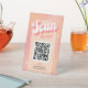Retro Electronic Payment QR Code Table Top sign with pastel peach and pink gradient background and nostalgic fonts. This modern Scan to Pay pedestal sign includes space for one QR code and contact details - use it for any type of digital payment, simply add your link to make your scannable QR code. Use this payment sign for your shop, boutique, craft show or market and make it easy for customers to pay using their phone.