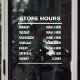Window sign for store hours of operation. Personalise it with your shop's personal business hours.