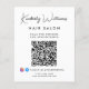 Chic promotional flyer for your business featuring your name in a stylish signature script and business type below in simple modern typography. Input your website address to create a QR code for customers and clients to scan for appointments, products, services, hours, etc. Add your instagram and facebook handle for customers to follow you on social media. If necessary, adjust font size by editing in the design tool.