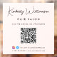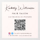 Chic custom light pink window decal cling sign for your business featuring your name in a stylish signature script and business type in simple modern typography. Input your website address to create a QR code for customers and clients to scan for a list of your products, services, hours, etc. Add your instagram and facebook user ids for customers to follow you on social media.