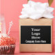 You can replace the display image with your company logo on this black sticker. Under your logo, there's white display text you can replace with your company name.
