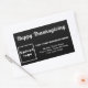 Thanksgiving sticker to greet your customers. Sticker that you can use as marketing material to advertise your business and promote your brand name. Sticker with thanksgiving greeting and with your business name to build brand name awareness. You can also use it as product label this thanksgiving season. Sticker shape is rectangle. Sticker design is simple white font on black background. To customise this sticker, upload your business logo, type your business or company name, address and phone number then check the appearance. If the appearance is pleasing to you, you can place your order now. If you need to resize and move the logo and texts to fit on this sticker or on other shapes and sizes that you will choose, please change in the design tool. You can also make other changes according to your preference in the design tool such as changing the sticker colour, font colour and font style. Happy Thanksgiving!