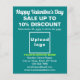 Happy Valentine’s Day! A lovely holiday to celebrate this February and to advertise also your business or to promote your brand name. Customisable flyer with Valentine sale, your business name and other information of your business, a marketing material that you can use to attract more customers. Customise it and distribute it to attract more customers to buy your products or clients to like your services. Design colours are white and yellow-green texts on teal green background. To customise this flyer, specify the percent discount that you will offer and sale dates. Upload also your business logo, type your business name, address, phone number, e-mail and website or your business social media page. Please check the appearance on front and back sides after typing texts and uploading logo. If the appearance is pleasing to you, you can place your order now. If you need to resize and move the texts and logo to fit on this flyer or on the size that you will choose, please change in the design tool. You can also change the background colour, font colour and font style in the design tool. Happy Valentine’s Day! Wishing you more sales this holiday.