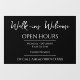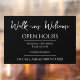 Business and Open Hours Company Window Cling Sign. Elegant Serif Fonts. Large type for easy reading. Easy to personalise for your own company needs.