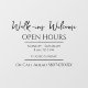 Business and Open Hours Company Window Cling Sign. Elegant Serif Fonts. Large type for easy reading. Easy to personalise for your own company needs.