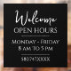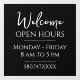 Business and Open Hours Company Window Cling Sign. Elegant Serif Fonts. Large type for easy reading. Easy to personalise for your own company needs.