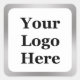 You can replace the display image with your logo on this white and faux silver sticker. The silver border is not made of foil.
