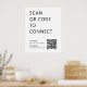 A simple poster white "SCAN QR CODE TO CONNECT". Simply scan the QR code with your smartphone to be taken to your desired social media page, community website, or networking platform. This poster is perfect for events, meetings, groups, organisations, and businesses. It's also a great way to provide your customers with free Wi-Fi access.
