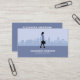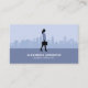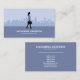 A business card with a silhouette of a woman with a briefcase on a background composed of a city skyline with a few buildings. The back has full contact information. Perfect for activities such as business consultant, accountant, tax services, investment manager, analyst, etc.