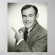Businessman pointing with finger, smiling, (B&W), portrait | George Marks | AssetID: 57539328