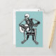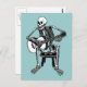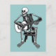 Seated skeleton guitar player. B/W, pen & ink drawing on t-shirts, sweats, cards, gift items.