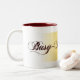 Imagine a charming coffee mug that exudes whimsy and cheerfulness. Its ceramic surface is smooth and glossy, catching the light in a playful dance of colours. Against a backdrop of soft pastel hues that resemble a sunrise, a vibrant bumble bee takes the stage.