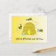 A cute design featuring a beehive with three little buzzing bees and flowers around it. Says 'we've moved our hive' customise with new address on the back...