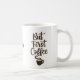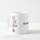 For your morning coffee. Text: But First Coffee. Personalise and add your name. Brown text, hand-lettered script.