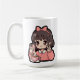 Classic kawaii chibi girl with phone selfie pose and coffee