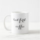 Enjoy your coffee in this cute mug that says in cursive, "but first, coffee."
