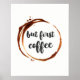 But first coffee typography quote poster print features modern hand written typography in a watercolor coffee stain.