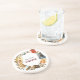 "But first, COFFEE" says the centre of this fun drink coaster. The text, in grey and brown, is at the centre of a wreath formed from coffee cups, coffee beans, and coffee related kitchen implements. Cute!