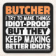 Funny Butcher Sayings "Butcher I Try To Make Things Idiot Proof But They Keep Making Better Idiots". Grab this Funny Butcher design as a funny gifts for an awesome mum, dad or friend.