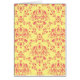 A classic, elegant damask design pattern in pastel buttery yellow and cranberry pink.