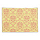A classic, elegant damask design pattern in soft pastel yellow and cranberry pink.