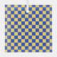 A checkerboard pattern with alternating yellow and blue squares. The repeating geometric design creates a vibrant, symmetrical visual effect.