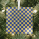Butter yellow and blue checkered board pattern glass tree decoration