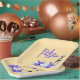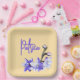 This very pretty butter yellow paper plate with the name of the birthday girl will be a great addition to the birthday party The lilac coloured sun orchid contrasts with the butter yellow making the paper plates stylish and elegant. A range of coordinated party supplies are available to go with this Sun Orchid and butter yellow theme.