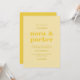 Beautiful butter yellow wedding invitations featuring bold, modern font pairings and shades of yellow. The back pops with a bright yellow to coordinate with the couple's names. The butter yellow will bring radiant warmth to your day. Perfect for couples seeking a blend of cheerful energy and refined elegance.