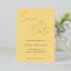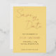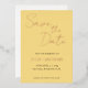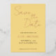 Simple style, foil print wedding Save the Date card with black, stylised script on a trendy, butter yellow colour background. Edit names and date, etc, with your own wedding information. Change foil colour if desired. Background colour may be changed as well to match your wedding colour scheme.
