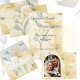 This very pale butter yellow and soft blue watercolor is a romantic and stylish theme for your wedding stationary and party supplies. The yellow and blue watercolor flowers are soft and elegant. This gold foil thank you has space for your names, your own thank you message and a photo of the wedding couple. The thank you card is part of a range of wedding stationary and party accessories and supplier will coordinate with this invitation making your preparations easy.