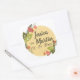 A joyful stickers in a buttercream yellow colour with white polka dots, orange flowers and foliage. (<a href='https://www.freepik.com/free-vector/collection-of-beautiful-floral-wedding-labels_1695810.htm'>Designed by Freepik</a>). <br/><br/>The sticker is easy to customise with your wording, font and font colour.<br/><br/>Not exactly what you're looking for? All our products can be custom designed to meet your needs at no extra charge.<br/><br/>Simply contact us at askcottonlamb@gmail.com<br/><br/>Coordinating products available: