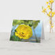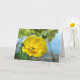 Here is a fine art photography blank note card with one yellow buttercup flower blooming at the edge of the pond on a summer day. The reflections of green leaves, white clouds and blue sky add to the lovely artistic, impressionistic composition.