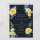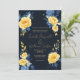 Buttercup yellow navy blue boho floral Wedding Invitation