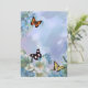 Blue hues with soft vintage blue, white and pink flowers, adorned with vibrant butterflies. Add your own message to personalise.